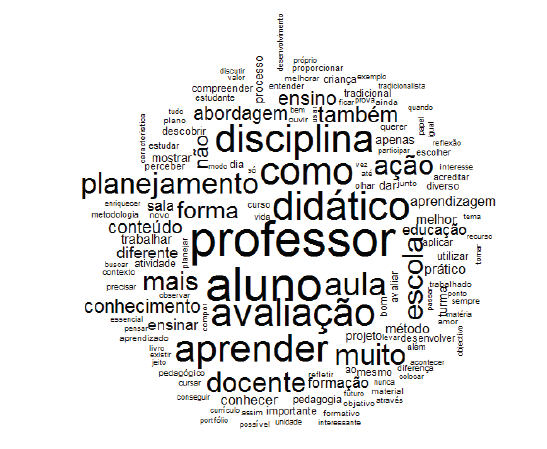 Nessa perspectiva, identificamos que a maioria dos estudantes passou a compreender os objetivos, conteúdos, metodologias, avaliação, planejamento, as abordagens de ensino, dentre outros conteúdos fundamentais para o desempenho da prática pedagógica docente atribuindo um novo significado para o conhecimento da Didática na formação de professores, conforme ilustra a nuvem de palavras. Vejamos alguns registros apresentados pelos estudantes da disciplina Didática na Ação Docente:
