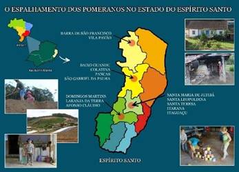 No Espírito Santo, os núcleos coloniais foram fundados em diversas regiões. Na Colônia de Santa Isabel, hoje, município de Domingos Martins, concentraram-se as famílias de imigrantes alemães provenientes de Hunsrück e do Hesse, região central do Reno, os bávaros e prussianos. À Colônia de Rio Novo, chegaram os tiroleses, italianos, austríacos, enquanto a Colônia de Santa Leopoldina recebeu os suíços, hanoverianos, luxemburgueses, hessenianos, austríacos, holandeses, badenses, alemães e pomeranos (BAHIA, 2015).
