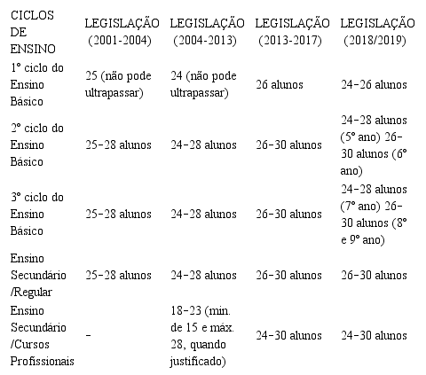 CAPUCHA, Luís; CABRITO, Belmiro Gil; CARVALHO, Helena; SEBASTIÃO, João; MARTINS, Susana da Cruz; CAPUCHA, Ana Rita; ROLDÃO, Cristina; TAVARES, Inês; MUCHARREIRA, Pedro Ribeiro. A Dimensão das Turmas no Sistema Educativo Português. Lisboa: Ministério da Educação, 2017. Disponível em: https://www.portugal.gov.pt/pt/gc21/comunicacao/documento?i=a-dimensao-das-turmas-no-sistema-educativo-portugues. Acesso em: 29 dez. 2018.