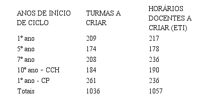 As estimativas acima apresentadas são valores agregados que poderão sofrer algumas modificações em função de diversos fatores, como por exemplo, uma ação política que operasse uma distribuição dos alunos entre as turmas sobredimensionadas e subdimensionadas ou a implementação de dinâmicas de mobilidade de professores que permitisse que professores sem turmas atribuídas fossem lecionar noutras escolas onde a redução do número de alunos por turma viesse a exigir novas contratações[1].