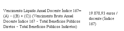 1 – Para cada novo docente teve-se em consideração o vencimento correspondente ao Índice 167, com base na presunção de que qualquer novo professor será contratado no início da carreira.