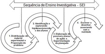 As atividades experimentais investigativas buscam a solução de uma questão que será respondida pela realização de uma ou mais experiências, que podem envolver etapas ou Sequências de Ensino Investigativa (SEI). Assim, uma SEI, deve ter algumas atividades-chave: na maioria das vezes inicia-se por um problema, experimental ou teórico, contextualizado, que introduz os alunos no tópico desejado e ofereça condições para que pensem e trabalhem com as variáveis relevantes do fenômeno científico central a ser estudado (MALHEIRO, 2016; ROCHA, 2015; CARVALHO, 2013).