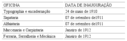 Por falta de estímulos, os nossos aprendizes – que representam o verdadeiro proletariado, inanido por absoluta carência de recursos – frequentam, ordinariamente, pouco tempo as oficinas, e, mal conseguem a prática rudimentar dos misteres inerentes ao ofício que escolhem, as abandonam para trabalhar em oficinas particulares, onde o seu trabalho, se bem parcamente, é estipendiado (ALMANACH..., p. 674).