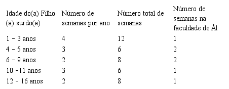· Pais de filhos surdos nascidos antes do ano de 1992, aos quais sãos oferecidas 2 (duas) semanas adaptadas por ano, até que seus filhos completem dezesseis anos.