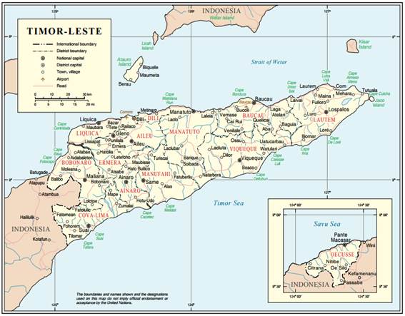 Timor-Leste é um pequeno país em extensão territorial, localizado no sudeste asiático, mais precisamente na região denominada de Ásia-pacífico. De 1512 a 1975, esteve sob domínio português. Após ter conquistado a independência em 28 de novembro de 1975, por meio da associação política Frente Revolucionária de Timor-Leste Independente (FRETILIN), o país foi invadido pelos indonésios (em 7 de dezembro do mesmo ano), que se instalaram por lá até o ano de 1999, quando por meio de guerra de guerrilha os timorenses expulsam os invasores. De 1999 a 2002, o país esteve sob administração provisória da Organização das Nações Unidas (ONU) até a conquista da restauração da independência ocorrida em 2002.