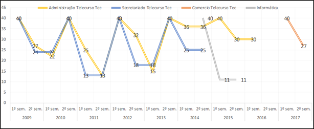 Com o intervalo no 1º semestre de 2017, com a não oferta dos cursos de Administração e Secretariado da modalidade EaD, no segundo semestre deste ano de 2017, passou a ser oferecido mais um novo curso, o Técnico em Comercio EaD, o quarto curso da modalidade oferecido na Unidade.