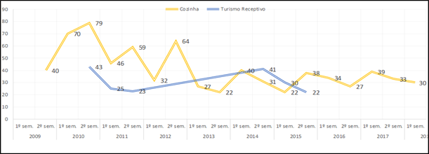 O curso técnico de Cozinha foi o único que formou turma no segundo semestre de 2018, sendo que esta turma conta com 40 novos estudantes, com características muito heterogêneas, típica do curso desde sua implantação.