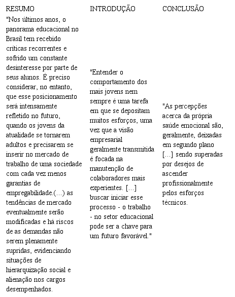 Posicionamentos que além de demonstrarem uma busca pelo coletivo, pelo social, também explicitaram uma pressuposta formação de cunho crítico, de tentativa de modificação de uma quadro social, evidenciada em fragmentos dos trabalhos de estudantes da Escola Técnica Estadual de Piedade.