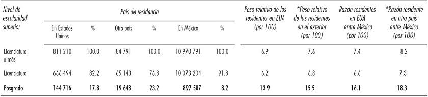 El monto de posgraduados mexicanos que radica en Estados Unidos equivale al 16% de todos los posgraduados que residen en México y al 19% si se considera el conjunto de mexicanos con posgrado que viven en el exterior en el año 2010.