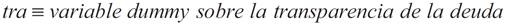 Como variable dummy, la variable tra es igual a 1 cuando la entidad federativa tiene obligación de transparencia explícita sobre su deuda pública y es igual a 0 cuando esta obligación no existe tal y como aparece en el cuadro 1.