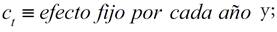 En este caso obtenemos un valor de β igual a 0.438, lo que nos indica que no tener límites de endeudamiento afecta directamente en el nivel de endeudamiento de manera positiva. Las entidades federativas con límites de endeudamiento tienen, en promedio, 43% menos deuda que los estados sin límites. En este segundo modelo incluimos efectos propios de cada año (véase cuadro 6), representados por la constante ct en la ecuación (2), que afectan el nivel de deuda de todos los estados por igual, pero que el modelo no contempla. También se incluyen los efectos fijos de factores que no se incluyen en el modelo pero que influyen en la deuda de cada estado y están representados por la constante ci (véase cuadro 7). Los efectos temporales son independientes de los efectos fijos de cada estado.