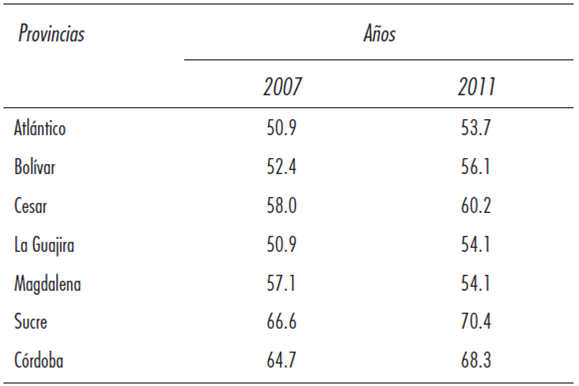 La Región Caribe de Colombia está formada por ocho provincias rodeadas por el Mar Caribe, con una población de 10 millones de habitantes (21% de la población total de Colombia), produciendo 14.7% del PIB del país, incluyendo el 35% de la población pobre de la nación. Se ha estimado que el 47% de la población de esta región vive bajo condiciones de pobreza.