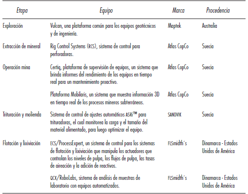 Más del 90% de la producción de los principales minerales metálicos en México se lleva a cabo por grandes corporaciones transnacionales que utilizan este tipo de tecnología. Dentro de estas corporaciones están Goldcorp, Fresnillo plc, Minera Frisco, Peñoles, Agnico Eagle, Pan American Silver y Grupo México. El Cuadro 1 muestra el resultado de una investigación en curso sobre la aplicación de la automatización en la minería en México, los datos dan cuenta de la presencia de estas tecnologías en todas las etapas del proceso de producción.