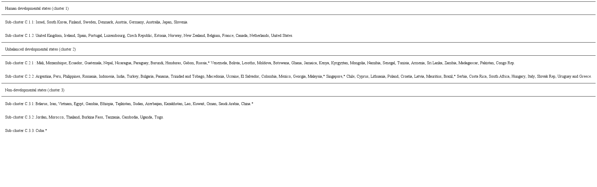Second, including the developed countries in our taxonomy enlarges the analytical universe and allows us to build a complete international taxonomy, thus reflecting the whole range of developmental public interventionism patterns across the globe. However, this increase in the sample size also implies some analytical drawbacks, as it dilutes some interesting intra-cluster differentiations, especially among developing countries. We try to sort this out by extending the scope of the taxonomy in order to analyze sub-cluster patterns.