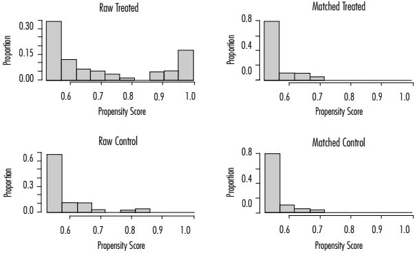 According to Gertler et al. (2018), this is the most appropriate overlap between the propensity scores of the treatment or enrolled group and those of the non-written group.