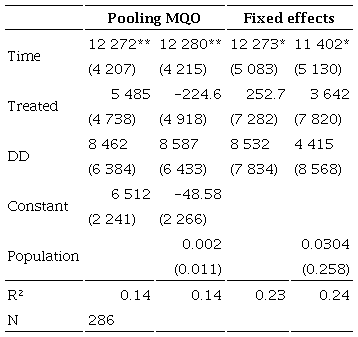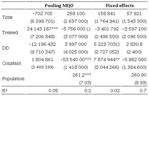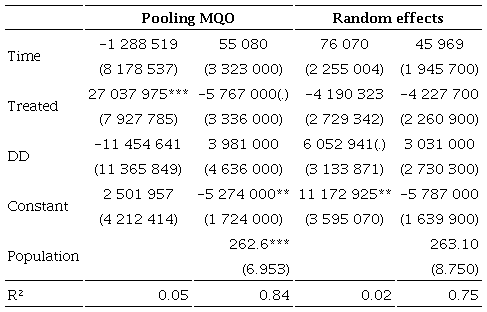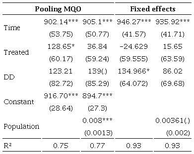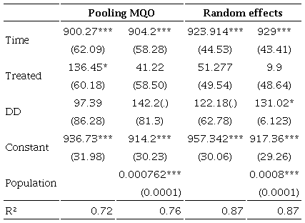The results consider the estimated observations per OLS (pooling), and the fixed and random effects methodology is used for more robust results. The method used was proposed by Heckman et al. (1998) and identified the impact estimator of a particular program in those who participated (ATT) in a non-parametric form. The DD consider the following equation: