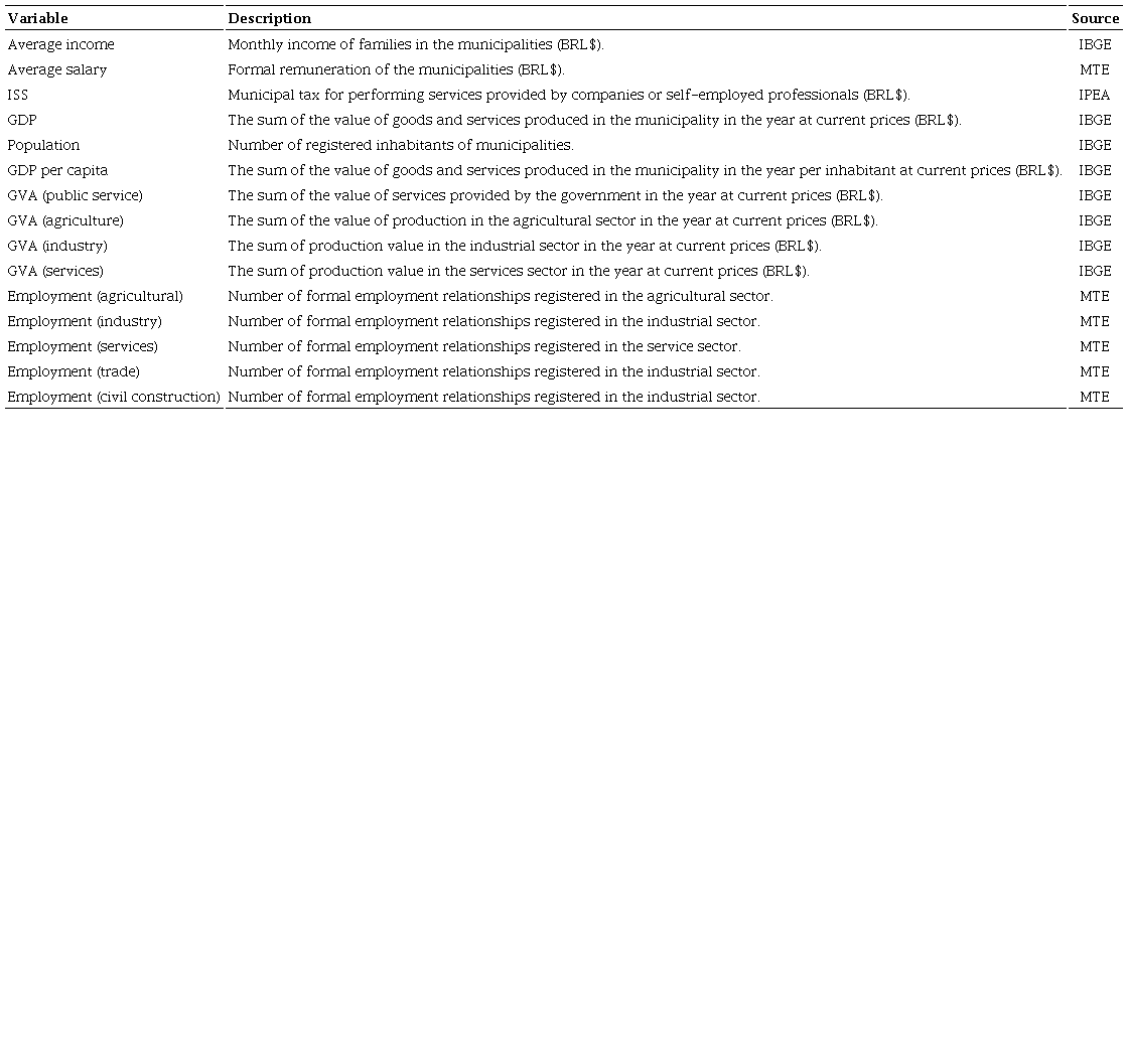 As for the impact assessment of Banpará branches’ presence in the State municipalities, the variables of economic performances described below in Table 2 were used with data obtained from the years 2010 and 2019 (average salary). In addition, this paper will verify the impact of such branches in that period, considering the Bank’s pre-policy expansion data in 2010. The data was obtained from the Institute for Applied Economic Research (Santos et al., 2020), the Brazilian Institute for Geography and Statistics (IBGE, 2021), and the Annual Social Information Report (MTE, 2021).