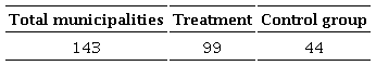 As for the realization of the estimations, the 143 municipalities of the State of Pará, registered by the Brazilian Institute of Geography and Statistics in 2010 (IBGE, 2021), were divided into two groups treatment and control (see Table 3). As a treatment policy, the presence of Banpará branches in the municipality was applied. This data was obtained from the Central Bank of Brazil’s Banking Statistics by Municipality program (BACEN). Each municipality can be allocated to one of two groups: treatment when it has branches or control when it has not.