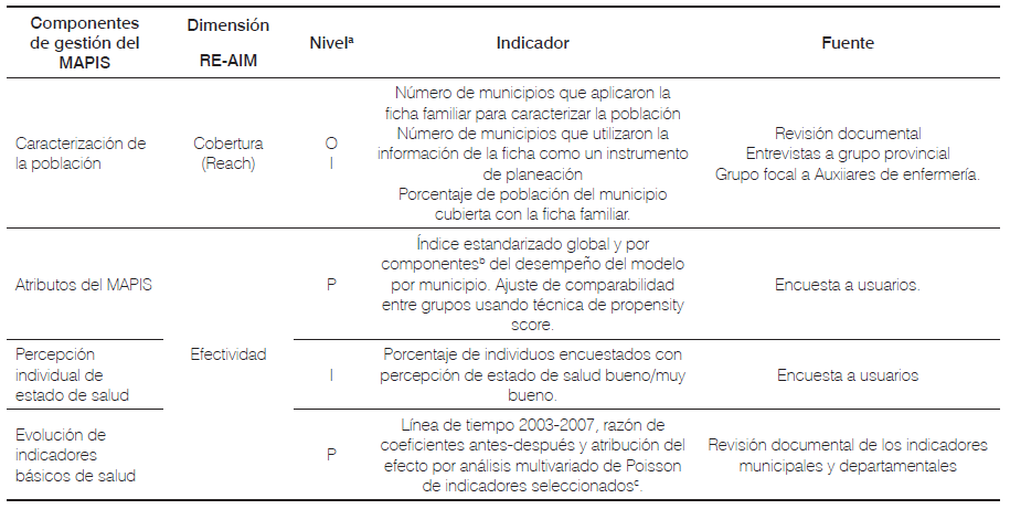 En su estructura operativa municipal, el mapis define como puerta de entrada al sistema las auxiliares de enfermería o promotores de salud pública, quienes visitan y caracterizan las familias, canalizando a los usuarios a los servicios de salud. Por su parte, el médico general y la enfermera realizan las actividades de atención primaria dentro de los servicios de salud ubicados en las cabeceras municipales y en algunos centros rurales. No obstante la trayectoria del mapis, la inversión de recursos y su relevancia para la política departamental y nacional de salud, este modelo no había sido evaluado en forma integral.