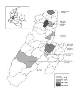 (36,96%), seguido por Espinal e por Guamo, com 28,57