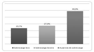 está sobrecarregado severamente, 27,3 está sobrecarregado levemente, e 49% não
