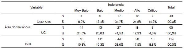 Asimismo, en cuanto a la dimensión indolencia del presente estudio, los/as enfermeros/as de los servicios de Urgencias, como los profesionales de UCI, manifestaron niveles alto y crítico, siendo los profesionales de Urgencias, las personas que obtuvieron los mayores porcentajes en estos niveles. De manera que, la existencia de indolencia en niveles alto y crítico en los/as enfermeros/as, es un aspecto de gran importancia, particularmente cuando se presenta en áreas como Urgencias y UCI, pues es allí, en donde los pacientes, la familia y, las relaciones entre el personal de enfermería y pacientes, cobran un valor especial en la prestación de la atención en salud [30,32].