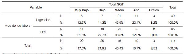 Urgencias, presenta SQT, aunque los profesionales de UCI tienen riesgo de