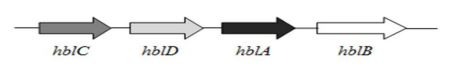 Nota: El operón incluye los genes codificantes para las tres subunidades proteicas: L2 (hblC), L1 (hblD) y B (hblA). Además puede incluir el gen (hblB) codificante para la proteína B’ [15].
