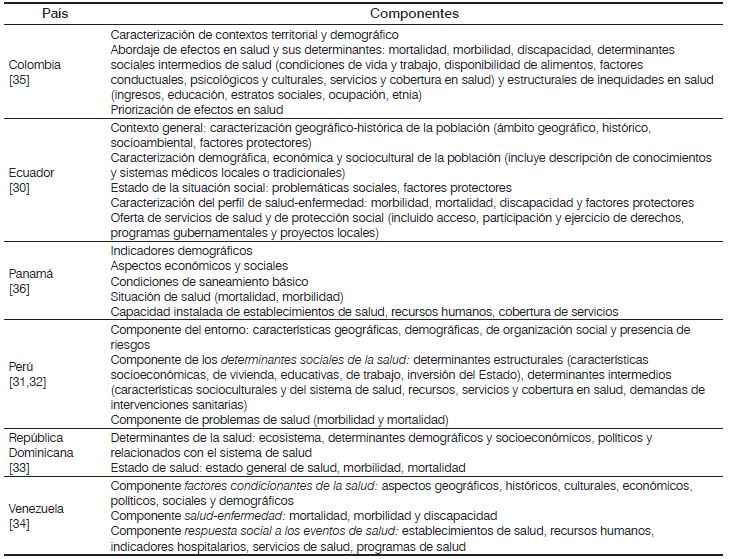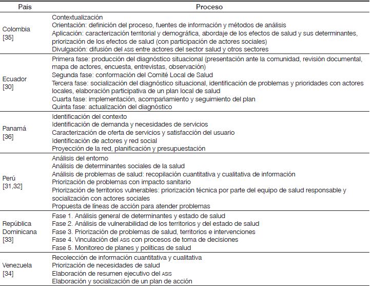 Respecto al desarrollo del asis, la revisión mostró que, en todos los casos, se le concibe como un proceso que inicia con la indagación documental y de campo, continúa con la definición de prioridades y concluye con la elaboración de un plan. Nuevamente, solo Ecuador describe, como paso previo a la recolección de información, la identificación de actores sociales y sus redes, además de prever el seguimiento y la evaluación de los planes; esto último también lo considera el modelo de República Dominicana [Tabla 1].