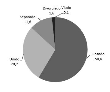 La Figura 3 presenta los datos desagregados por estado civil. El mayor porcentaje de vasectomía corresponde a los hombres que tienen una pareja estable, de tal manera que el 59 % de los usuarios de vasectomía están casados, mientras que para el 28 % su estado civil es unión libre. Esto corresponde a lo reportado en la ends 2015 [16]: la vasectomía es más usada por hombres unidos o casados, de tal manera que el 3 % entre 13 y 59 años se practicaron el procedimiento, frente a tan solo el 1 % de los hombres no unidos con actividad sexual reciente. Del total de vasectomías, el 90 % están actualmente casados o unidos, mientras que el 9 % estuvieron casados o unidos, y un 2 % nunca se ha casado o unido.