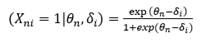 The dichotomous Rasch model [18] was used in order to analyze the Katz index. This model states that a positive response from a person n to an item I (Xni = 1) is a probabilistic function of the person’s ability level (θn) and the difficulty of the item (δi), so the odds of a positive response from a person of certain ability level to an item of a given difficulty equals