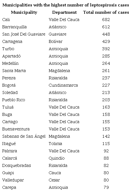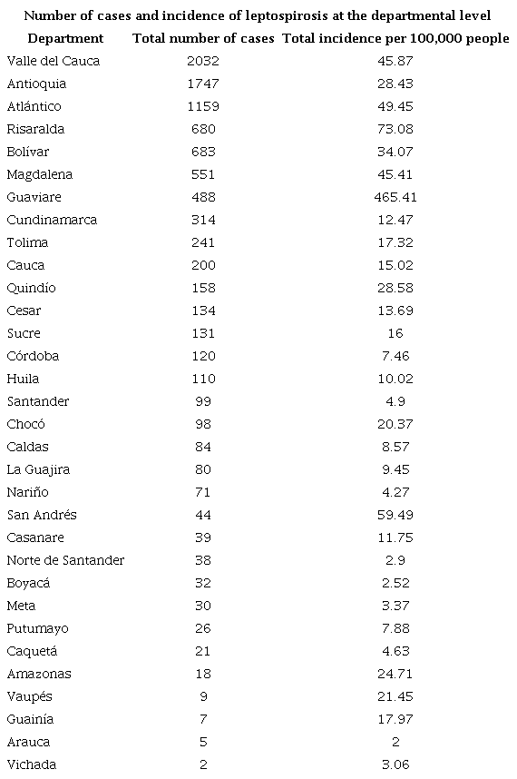 Keywords: leptospirosis, zoonoses, epidemiology, Colombia, incidence.