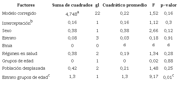 Para determinar si las variables sociodemográficas (sexo, estrato socioeconómico, etnia, régimen en salud, grupos de edad y población desplazada) y la combinación de sus interacciones podrían tener influencias sobre las variaciones del Puntaje Z, se desarrolló un modelo de Anova multifactorial y se obtuvo como resultado que las variables sociodemográficas no influyen sobre las variaciones en el Puntaje Z; sin embargo, la interacción presentada entre las variables de estrato socioeconómico y grupos de edad podría influenciar las variaciones del Puntaje Z (véase Tabla 3]. Además, los datos cualitativos aportados por las niñas y los niños dan cuenta de algunos cambios en hábitos nutricionales y estilos de vida que pueden mostrar esa variación en el imc.