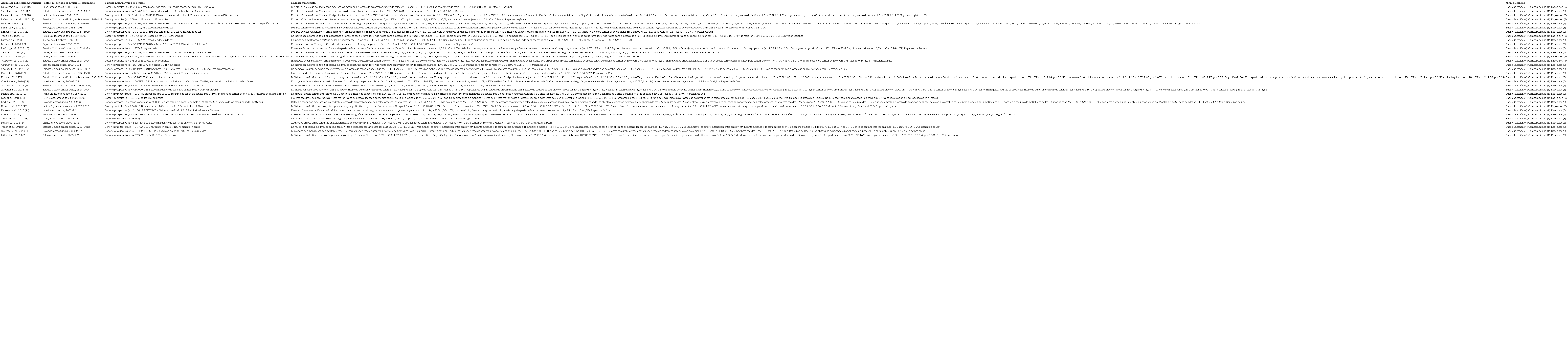 La evaluación de la calidad fue basada en la escala de Newcastle-Ottawa [15]. En la Tabla 2, última columna, se muestra dicha evaluación.