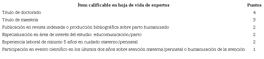 Keywords: Colombia, educommunication, health education, validation studies, humanized childbirth, audiovisual resources.