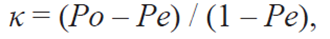 donde Po es la proporción de concordancia observada y Pe la concordancia esperada [25].