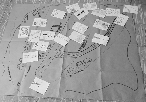 Con los grupos conformados, se efectuaron 27 sesiones de construcción de cartografía socioambiental en los tres municipios (nueve en cada localidad), a través de cinco momentos de trabajo: