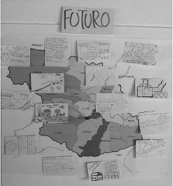 En términos generales, se trata de un mapeo en el que los participantes plasmaron anhelos respecto de los territorios, cuya particularidad es la expectativa de una mayor presencia estatal, expresada en una política social orientada a la producción de condiciones de bienestar para las comunidades. En este sentido, hicieron referencia a la necesidad y el deseo de lograr arreglos sociales que les permitan, por un lado, disponer de una mejor infraestructura vial y de servicios públicos, permanentes y de calidad; por otro, tener soberanía comunitaria sobre los territorios, posibilitadora de ambientes habitables y saludables, y de legitimación, por la vía jurídica, de la principal actividad económica en los casos de los municipios en los que se ejerce la minería de hecho.