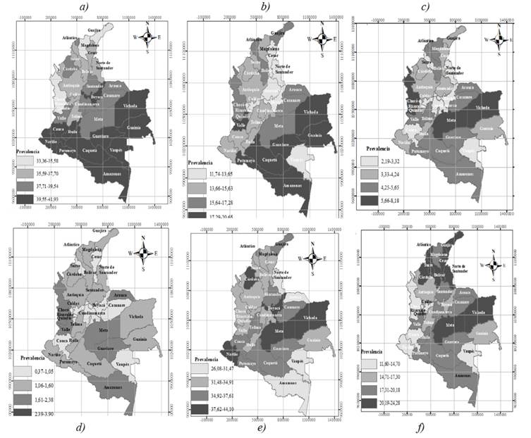 En términos de salud pública, los mapas obtenidos también se pueden aprovechar para plantear nuevas hipótesis de estudio, como, por ejemplo, dilucidar las razones de las altas prevalencias en las mujeres y en las zonas costeras, y revisar a escalas menores (municipios, veredas, barrios) e implementar estrategias que disminuyan estas condiciones en salud.