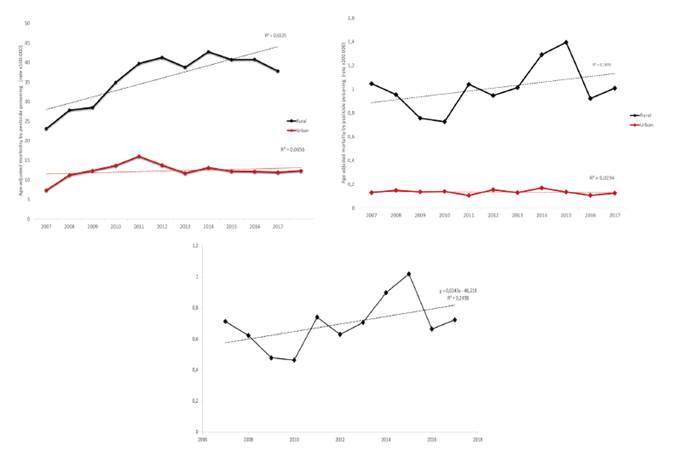 Keywords: Rural Population, mortality, urban population, pesticides, poisoning.