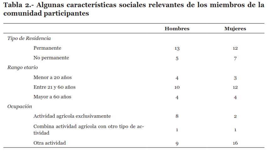 El plan de abordaje contempló la visita a 8 de los 13 sectores de la comunidad cubriendo la mayor parte del territorio, más el puesto de control de la GNB que se encuentra en la entrada por Macuto, logrando la participación de 37 personas de la comunidad (ver más información en Tabla 2). Se visitaron 9 parcelas productivas de las 45 censadas ubicadas en distintos sectores de la comunidad. Se realizaron 6 entrevistas en profundidad a actores clave (cronista de la comunidad, rezandera, un productor agrícola de tiempo completo, un productor agrícola tiempo parcial, una lideresa de la comunidad, y un joven miembro de la Asociación de transporte) y 9 entrevistas semi-estructuradas a los productores agrícolas de las 9 parcelas visitadas.