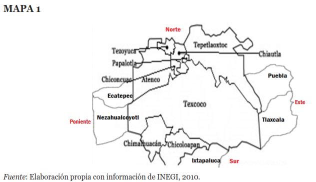 El área de estudio para la realización de la investigación comprende el municipio de Texcoco, se localiza en la parte central de la zona oriente del Estado de México y al oriente de la ciudad de México. (Mapa 1).