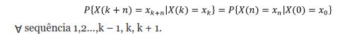 Em síntese, a probabilidade do estado futuro do processo depende unicamente das decisões atuais X(tk)=XK. Desde que se conheça o presente, o passado se torna irrelevante nas tomadas de decisão para se planejar o futuro. Para Nogueira (2009), este tipo de processo estocástico é também denominado de memoryless process, isto é, processo sem memória, uma vez que o passado é esquecido ou desprezado.