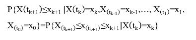 Um processo de Markov é um tipo particular de processo estocástico que para qualquer tempo (t0≤t1≤t2≤...tk≤tk+1=0,1,2,…) e cada sequência (k0,k1,…,kt-1,kt,kt+1) atende a seguinte expressão:
