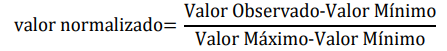O valor normalizado se aproxima ao valor máximo (1) quanto maior o valor observado.