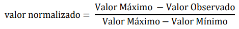 Neste caso, o valor normalizado se aproxima ao valor máximo quanto menor for o valor observado, portanto minimizando o impacto da variável no trabalho decente.