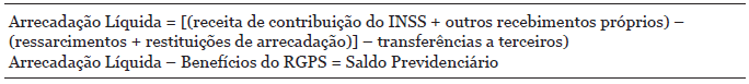 Como visto em Fagnani e Tonelli (2013), outra saída do governo federal muito usada, quando aumenta a resistência da sociedade e dos partidos de oposição ao governo, tem sido a ameaça do uso de política fiscal com o aumento indiscriminado de impostos. Desta forma, quando se analisa a situação financeira da previdência, há que se diferenciar o resultado previdenciário (arrecadação líquida menos benefícios fiscais) do saldo operacional (recebimentos menos pagamentos).