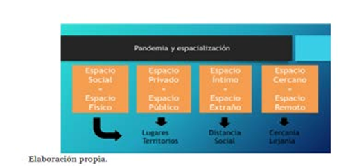 Los procesos de espacialización que la pandemia ha re-generado se expresan de varias maneras que, en general, se desprenden de la llamada distancia social: