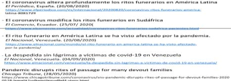 Un fenómeno similar que observamos en distintos países, donde los tradicionales rituales funerarios son prohibidos o imposible de realizar, como se aprecia en algunos de los ejemplos presentados en la figura 3: