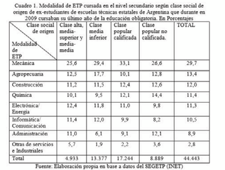 Bajo este horizonte, una arista posible para enfocar el estudio de estas trayectorias educativas es considerar cómo los recorridos de los jóvenes que transitaron la ETP van bifurcándose en términos de elección, acceso y graduación, formándose así una serie de caminos posibles, cuyo abordaje puede ser entendido en función de su origen social. Pues como señala Riquelme (2006) el estudio de la segmentación socio-educativa implica tener en cuenta qué sectores sociales circulan por cada circuito de educación, a qué saberes y conocimientos acceden y se apropian, y cómo se diferencian en el acceso a títulos y certificados de las ofertas educativas. Por todo ello, resulta relevante preguntarnos cuáles son los recorridos de los egresados de la ETP de Argentina actualmente, en función de su clase social de origen.